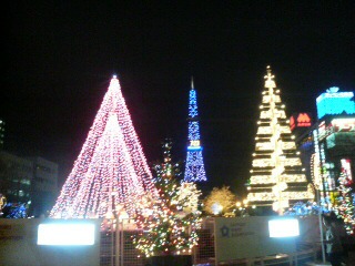 地上に戻ってからは大通公園のイルミネーションの中を西に進む。