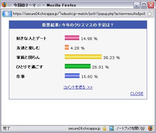 ちょっと古いデータだが、男女のマッチングサービスの運営会社、match.comの「今年(2007年)のクリスマスの予定は?」によると、以下の通り。
