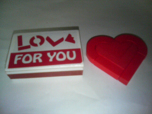 一見ハートマークだが、組み立てると「LOVE」の文字になるというもの。